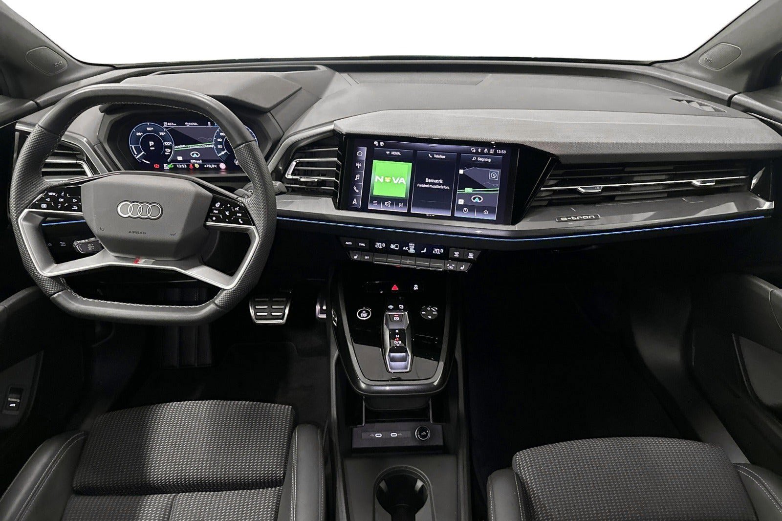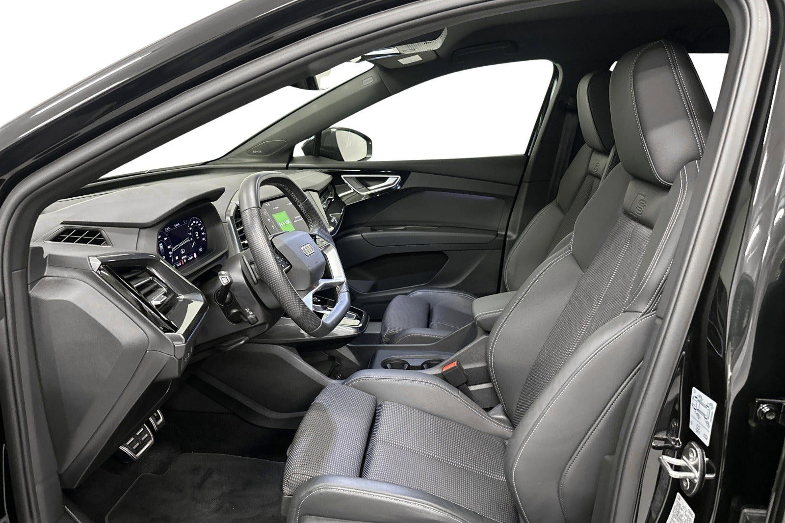 Audi Q4 Edition S-line imponerer med 21" Audi Sport alufælge i mat bronze og glanspoleret stjernedesign. Med sort optikpakke, head-up display og et markant, sportsligt udtryk er du garanteret både luksus og lækre detaljer – til dig, der vil skille dig ud på vejen!