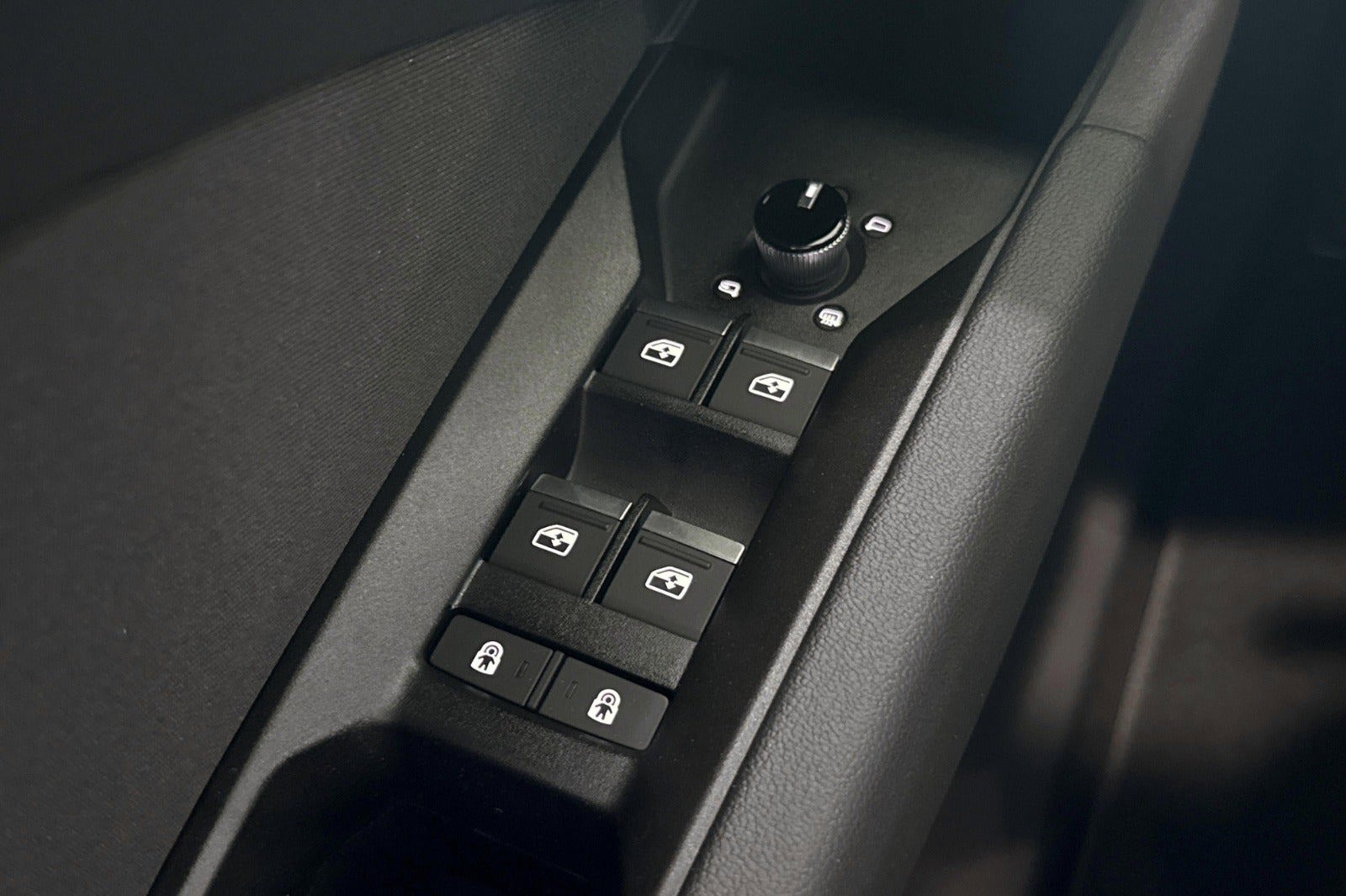 ✓ Interiør med sportssæder i sort stof