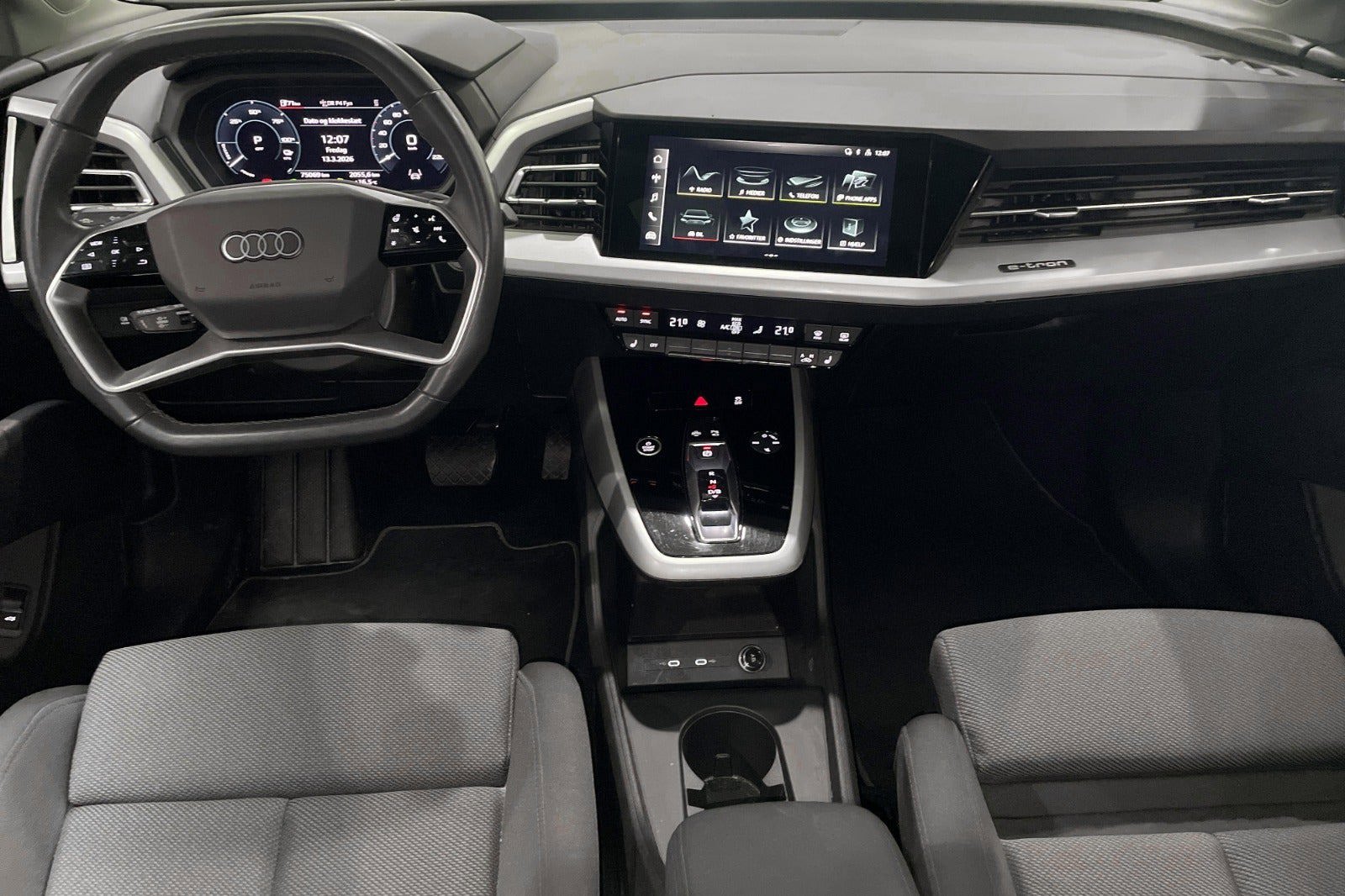 ✓ Interiør med sportssæder i sort stof