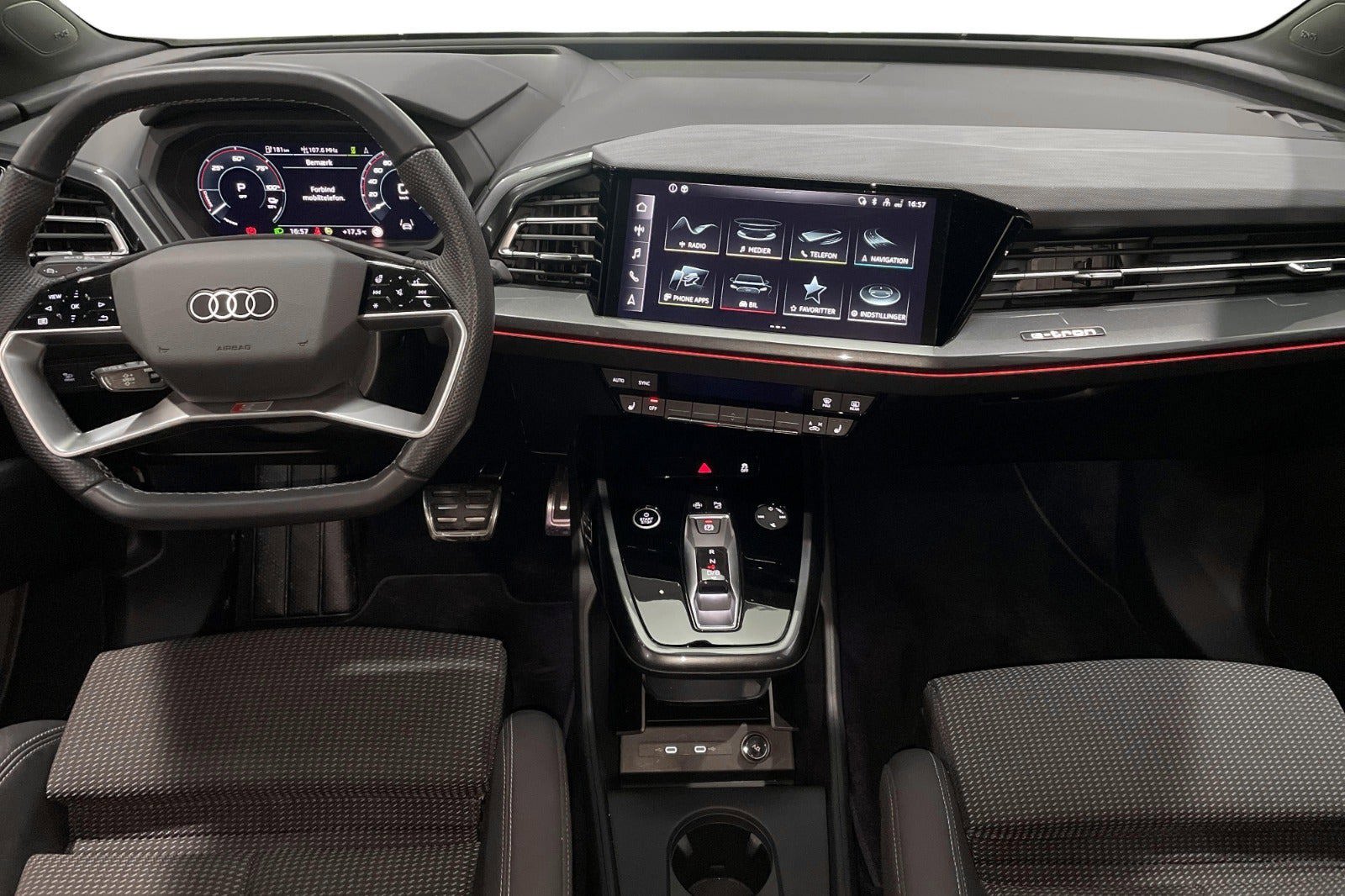 ✓ S line-interiør med sportssæder i sort stof-kunstlæder