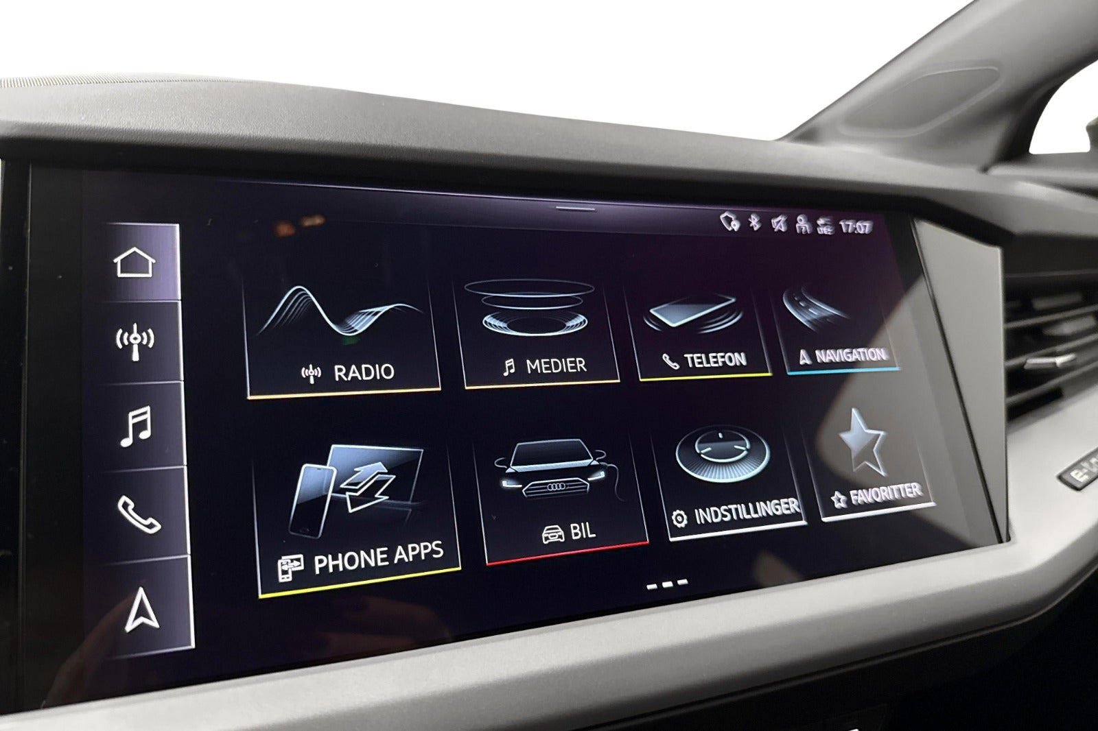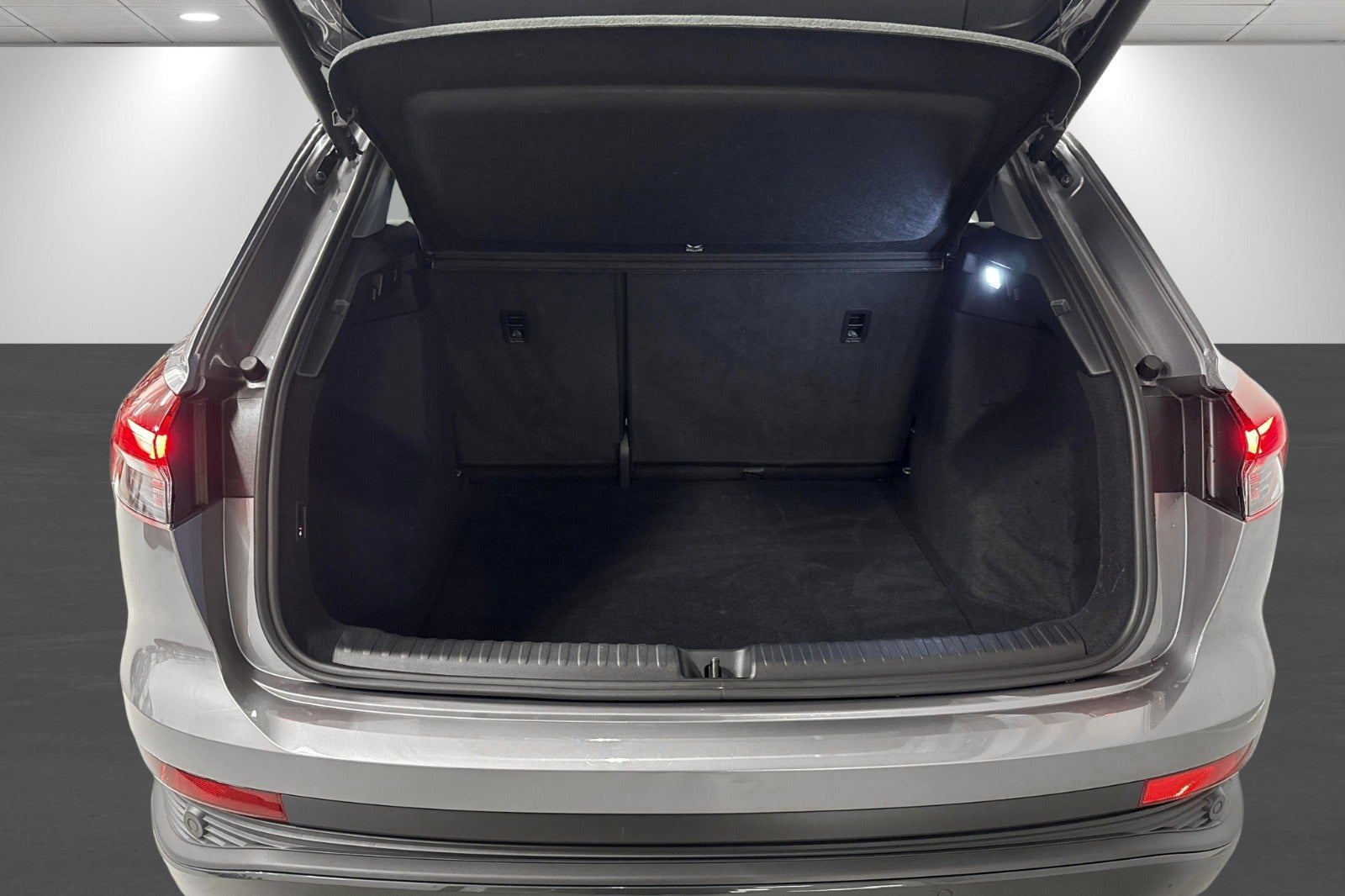 Audi Q4 e-tron Progress i Tyfongrå metallak – en moderne, fuldelektrisk premium-SUV med både komfort, stil og masser af udstyr.