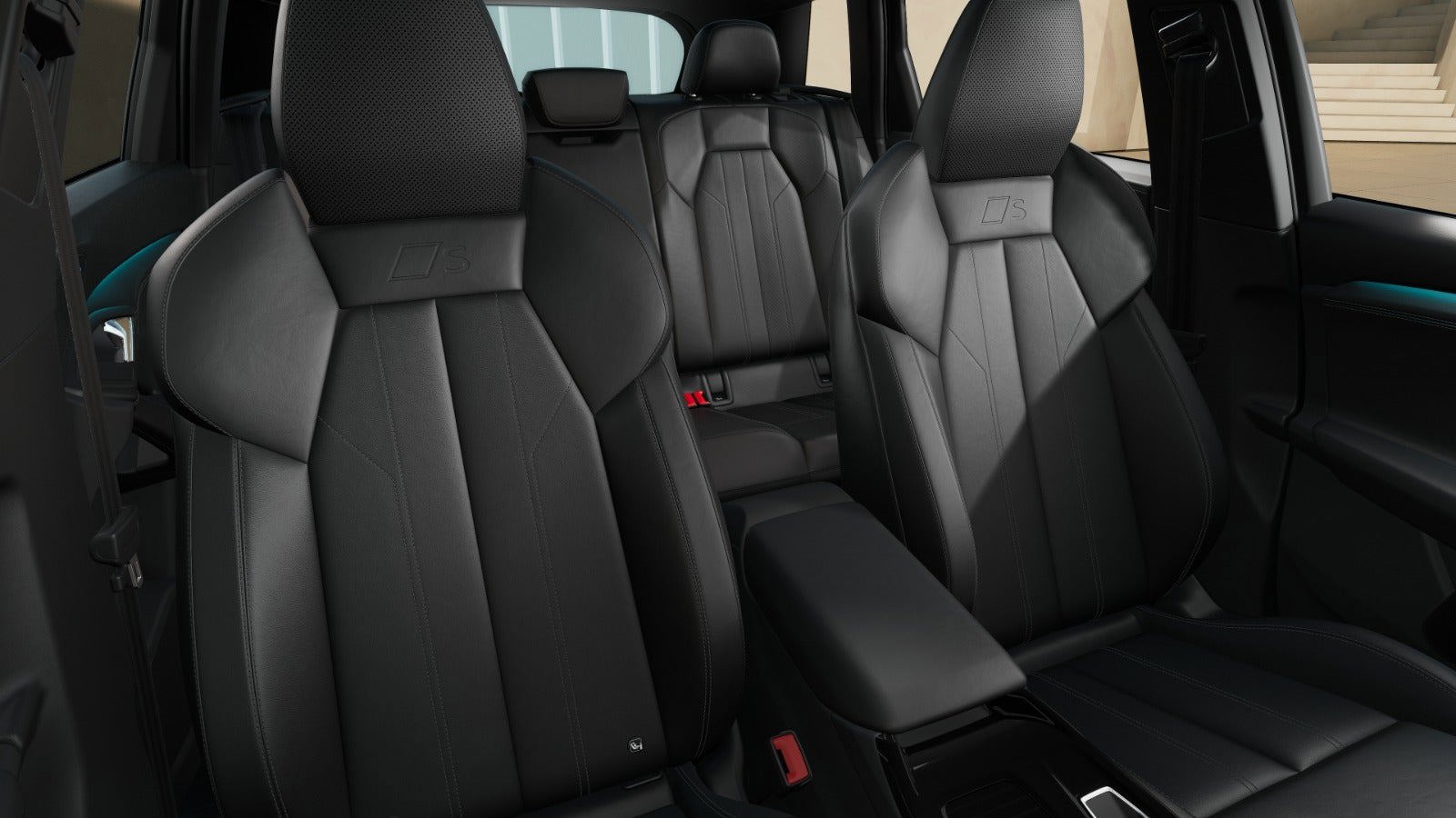 ✓ S line-interiør med sportssæder i sort læder-kunstlæder