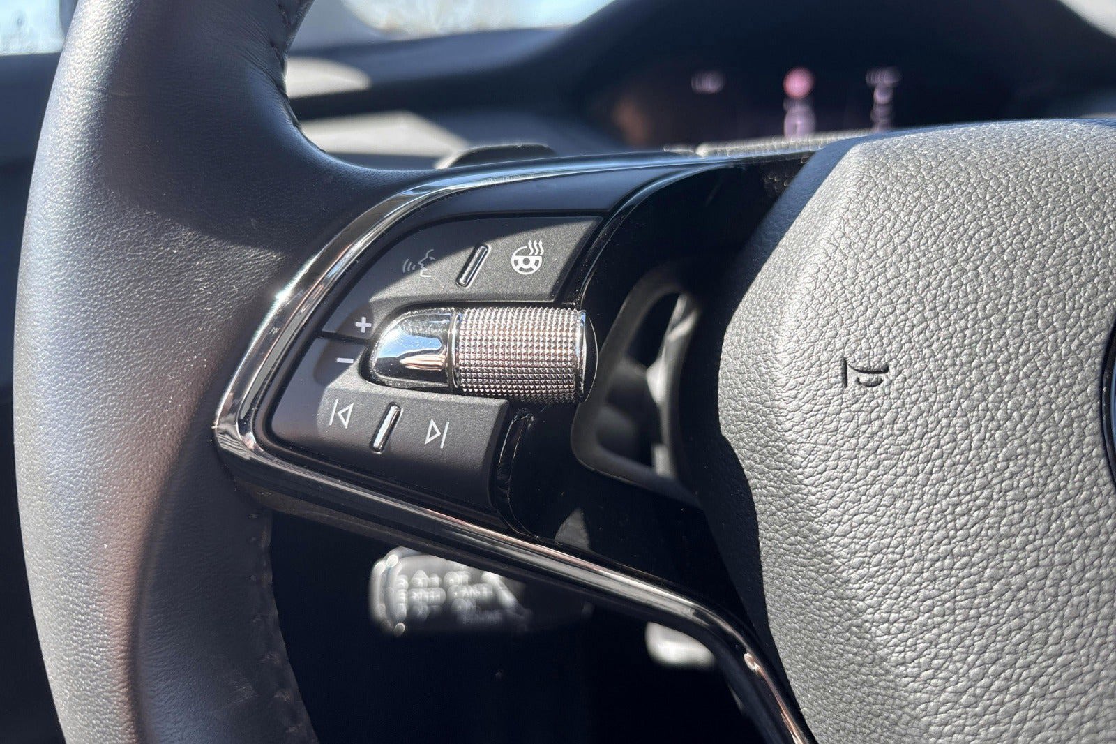 - Mørk kunstlæderkabine m. brune syninger