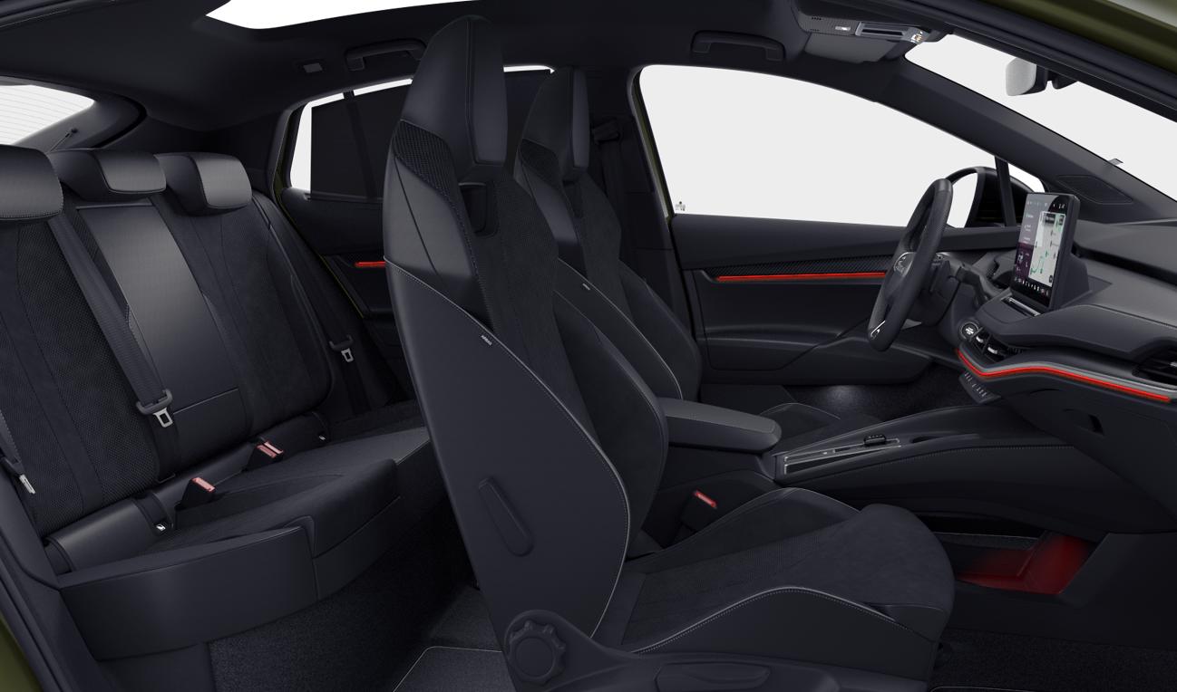 Indtræk: Sportline (sort alkantara stof med sort dellæder), sportrat, sort himmel og dekorelementer i carbon design)