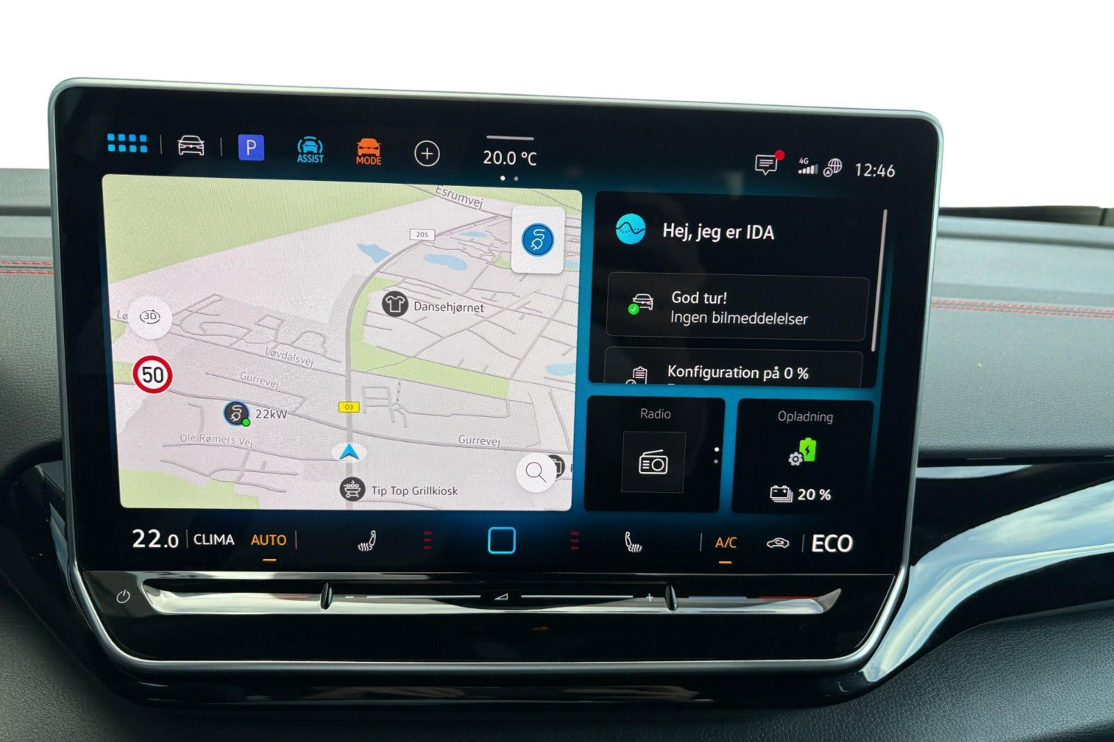 Bilen koster 420,- i halvårlig CO2-ejerafgift og men en samlet rækkevidde på 513 km på en enkelt opladning.