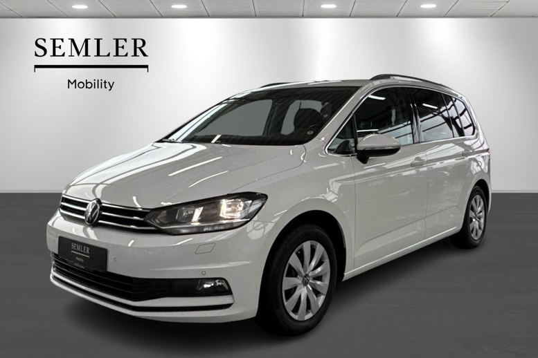 VW Touran Comfortline 1,5 TSi DSG i farven Pure White,